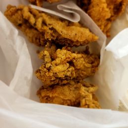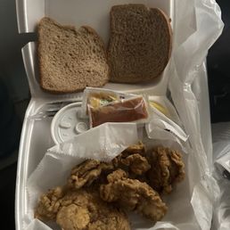 Parking~it's a strip mall so it is limited parking but, it's plenty of street. Food~it's made to order and it is reasonably priced you get about 6 oysters per order 1 side and bread for 13.49 Service~The cashier was very nice and, helpful explaining to us the different lunch and dinner combos, and family size potions. Ambience~it a seating area while you wait. It also a fish market so they sale whatever the catch of the day is put it's plenty of choices. I would check this place out if you like fried foods and, fresh seafood!